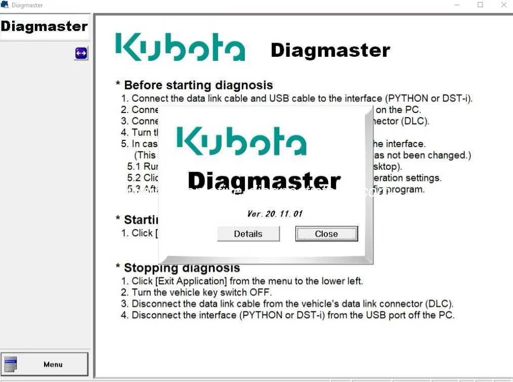 DiagmasterMit neuen Funktionen wie Automatic Vehicle Detection (Automatische Fahrzeugerkennung) kann das Gerät mit mehreren Fahrzeug-ECUs über die herkömmliche serielle Kommunikation sowie das moderne CAN-Bus-Protokoll kommunizieren.Anleitung zur Datenerfassung und Fehlerbehebung, bietet die Diagmaster-Plattform alle Diagnoseinformationen, die für eine fortgeschrittene Fehlersuche benötigt werden.Das einzigartige Design erleichtert die Erweiterung und Aktualisierung, um neue Managementsysteme und Fahrzeuge zu unterstützen. Diagmaster umfasst eine Datenbank von Merlo, All, Dieci, Bobcat, Manitou, Nonself, Kubota, Carrier, Takeuchi und CNH, verfügt über eine Stufe 9